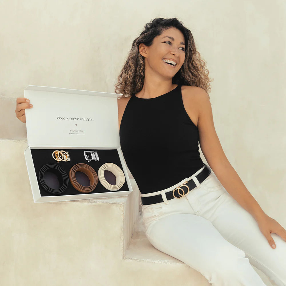 Our best-selling Bella Trio Bundle gives you multiple belts and interchangeable buckles in one set, so every outfit has the right match without buying pieces one by one.